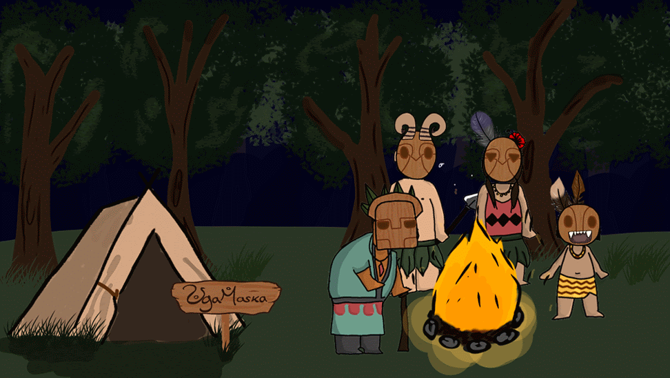 - Generative Ending: At the end of the day, your creations will come to life. Watch the tribe celebrate around the fire wearing the exact masks that you finished in time.